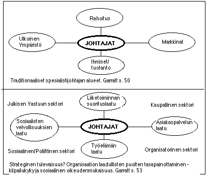Näyttäisi, että kehitysprosessia johdon parissa tarvitaan nimenomaan tässä kohti. Hänen on opittava ymmärtämään suunnanantamista ja niitä vastuita, joita on politiikan tekijällä ja strategilla. s. 57