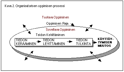 Vaikka organisaation puitteissa tapahtuvasta oppimisesta on keskusteltu liiketalouden johtamista käsittelevässä kirjallisuudessa jo yli 15 vuotta (esim. Argyris 1977), eivät tutkijat ole vielä päässeet yksimielisyyteen sen määrittelystä (Garvin 1993). Tämä johtuu siitä, että organisatorinen oppiminen on monimutkainen ja moniulotteinen asia, joka tapahtuu eri kognitiivisilla tasoilla (Argyris 1977, 1991; Serge 1990) ja potentiaalisesti sulkee sisäänsä monia osaprosesseja (Galvin 1993).